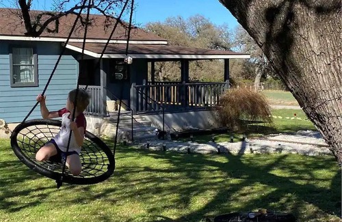 Enjoy this clean and cozy home with a large wraparound porch for relaxing with family and friends. The 2 bedroom, 2 bath home has a full kitchen, indoor and outdoor dining, and a large fire pit area in the backyard with lots of seating. The home is secluded enough to see the stars, but close enough to downtown Johnson City to explore. Enjoy being right on the 290 Wine Trail, close to Pedernales Falls State Park, a short drive from Austin or Fredericksburg and much more!