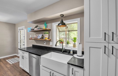 This newly remodeled and cozy 3-bedroom, 1-bathroom home offers a serene escape with modern comforts. Enjoy the inviting living room, bathed in natural light from the bay window. The master bedroom features French doors leading to a lovely deck and fully fenced backyard with a private hot tub, ideal for pets and morning coffee. The office is an ideal workspace or can become a kid's retreat, with the option to expand the trundle bed to create two beds.