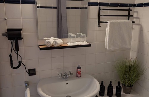 The kitchenette is equipped with a refrigerator, an electric kettle, and a toaster. Connect to the WiFi, or get cozy in front of the TV. Bathroom amenities include a hair dryer, towels, and toilet paper.