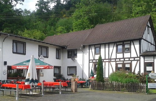 Our excursion restaurant located on the large Nister, is the ideal meeting place for motorcyclists and motorcycle groups. In our idyllic beer garden you will find a sunny place to rest and retreat with home-style food, breakfast and always homemade cake. The surrounding area offers our guests great opportunities for excursions, games, fun, excitement and much more. So pay the visits to the monastery Marienthal and the monastery Marienstatt and the historic city of Hachenburg. The cities of Bad Marienberg, Westerburg, Limburg an der Lahn and Koblenz are also easily accessible. But are also offered recreational sports such as hiking and walking and great routes for extensive bike and motorcycle tours. WesterwaldSteig - Wanderer we offer the transfer of luggage to the next accommodation for a fee of 10 €. Incl: rich breakfast, free Wi-Fi, free parking directly in front of the house, possibility to adjust your bicycles and e-bikes