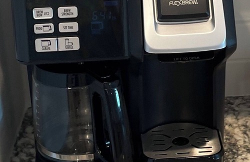The kitchen features granite counter-tops and all appliances including an oven, fridge, microwave, and dishwasher. It is stocked with everything you will need including a blender, toaster, and dual brew coffee maker for brewing pots of coffee or individual K-cups. The dinner table can seat up to 8 and there also is kitchen island seating for 4.