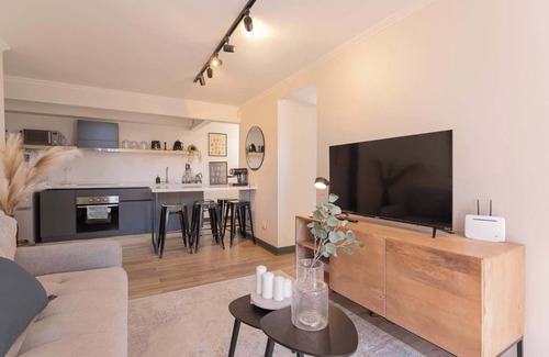 Relax in our cozy living room featuring a comfortable sofa bed, ideal for unwinding after a busy day. Cook up a storm in our fully equipped kitchen or enjoy the fresh air on your private terrace. Take a soothing bath at the end of the day and recharge.