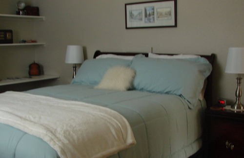 This 2nd story 2 bedroom, 1 bath open concept vacation rental has over 1200 square feet plus a large deck sitting high among the trees with a mountain and valley view. The deck allows for amazing star gazing as there is no outside lighting on the property to distract from star gazing. There are plenty of windows to ensure a bright and airy environment inside. The home features fun “vintage modern” décor, vaulted ceilings, 4 ceiling fans, air conditioning, a full kitchen stocked with commonly used condiments, all the cooking supplies you’ll need and a coffee maker with coffee and teas provided. There is also a laundry room with a full size washer and dryer, a 40” Smart HDTV with a DISH satellite system, free WiFi, and a gas grill and patio dining set on the deck. It is stocked with several games, puzzles, magazines and books including numerous vintage books and magazines (Look, Life, Saturday Evening Post and National Geographic) from the 1940s – 1970s for your enjoyment. Each of the 2 bedrooms has a queen bed and there is a queen sofa sleeper in the living room. There is a private entrance to the rental that is located above the garage, so noise isn’t a big concern for the owners. There is a large fire-pit area which may be available upon request, at the owner’s discretion and depending on the fire conditions and the owner’s availability to set it up for your use.