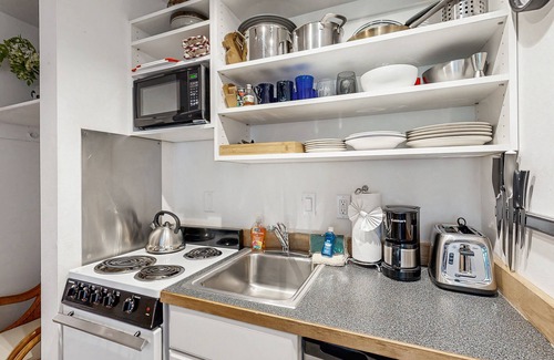 Take that long-awaited ski vacation you have been looking forward to and find yourself close to the lifts in Elkhorn Villiage when you make Valley Gem your home away from home. With Dollar Mountain just a half-mile down the road and Sun Valley Ski Resort just four and a half miles away, you'll have world-class skiing practically at your doorstep! Inside, you will find a cozy layout and mountain decor throughout that will welcome you with comfortable furnishings and all of the comforts of home. Before heading out for a full day of fun, bring a cup of coffee made in the kitchenette, out to the private deck, and look out to the flowing water running behind the property. The deck is furnished with a bistro table for alfresco dining during the warmer months.