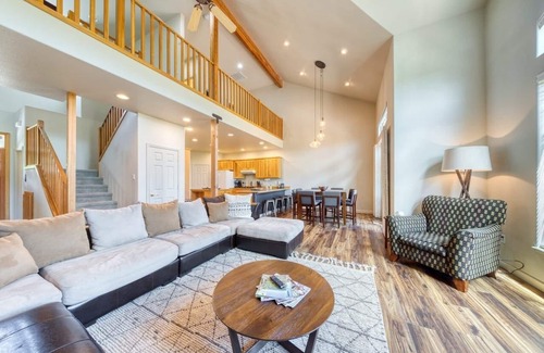 We've designed this spacious home to be very welcoming to our guests. The open floor plan includes four large bedrooms with three King beds! The family suite is especially useful for families who want kids to be close, but have their own space (with two twin beds and a TV) - joined by a unique Jack-&-Jill bath and closet. On the other end of the house is a more private large bedroom with it's own private bathroom, king bed, lounger and large TV. The open loft is a getaway with a comfy couch which makes out into an equally comfy queen bed. Finally the first floor Master Suite is a beautiful retreat with a large full bath, separate tub, shower and toilet room.