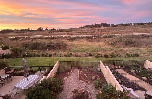 Our sunny condo is situated immediately adjacent to the Ellwood Mesa Preserve, offering water views of the newly expanded Devereux Slough and direct access to a Class 1 bikeway leading to UCSB.