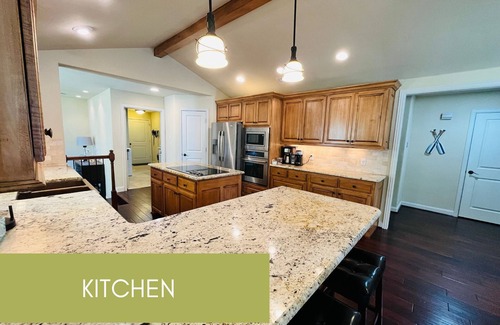 Relax at the lake with friends and family. This spacious house in a peaceful neighborhood will be the perfect getaway. Featuring 2 Bedrooms with King beds and attached bathrooms, guest room and an upstairs "bunk room", there is plenty of room for everyone. Plus lots of activities like ping pong, darts, foosball, cornhole, board games, and of course - lake fun!! Swim, ski, wakeboard, bring your boat and enjoy the easy access to boat ramps and all that Cedar Creek Lake has to offer! A dream kitchen filled with great cooking equipment.