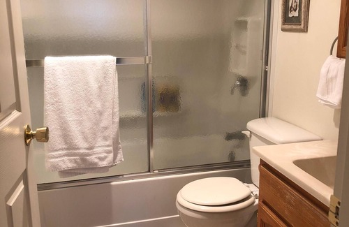 This newly remodeled one-bedroom apartment is spacious, bright, and comfortable with a convenient midtown location. Very easy access to grocery stores, shopping mall, banks, restaurants, tourist attractions, trails, airport, ferry, hospital, schools, and bus routes. The apartment is fully furnished and the kitchen is equipped with cookware, dishware, glassware, utensils, pots/pans, toaster, blender, microwave, coffee pot, electric oven/stovetop, and full refrigerator. The living room is furnished with a trundle sleeper sofa, armchairs, and entertainment center including Smart TV/DVD/Internet. Dining table seats 5; (1)queen bed & large dresser; large storage room plus closet. There is one full bathroom with tub/shower; linens provided. This apartment is on the ground level down a flight of stairs, and has all the amenities of home with cozy and warm decor, a large living area, and an ideal location making this midtown property hard to beat! Street parking is available. Laundry facilities on site. Stays exceeding 14 days require a signed lease agreement and security deposit.