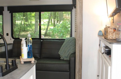 Adorable RV nestled at the end of a cove! Our cozy place is a great escape for couples and families ready to unplug and relax. Beautiful lake views from all main areas of RV and a large sitting area for grilling and enjoying nature at its best. This place is both a retreat and an experience you won’t forget. These pictures don't do justice, come see for yourself!