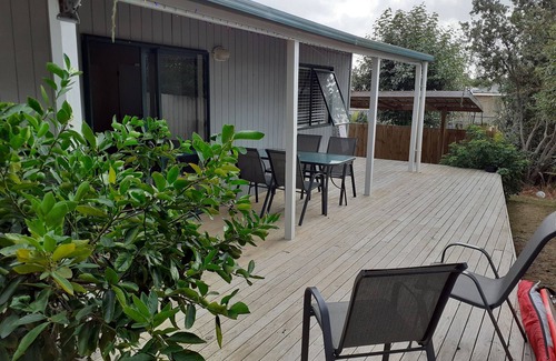 Sunny deck to relax on in summer and a fire place to keep you warm on cooler winter nights.