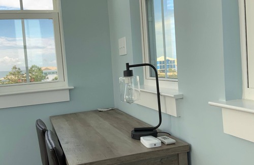 Enjoy a wonderful escape to Big Blue Sea. Private pool, and a quick walk to the neighborhood beach. With large deck on both floors, eat dinner on the on the top deck and enjoy the view, or relax with a book on the lower deck. Top floor crows nest has a great view and a writing desk. High speed Skylink internet for remote working, writing, gaming, and smart TV's. Private neighborhood beach. We host a large variety of wildlife on our beaches including turtle nesting areas, dolphins, fishing and a variety of birds. Perfect weather in the fall!