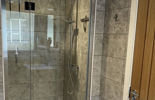 The master bedroom has a 5’ double bed, fitted wardrobe and chest of drawers. This bedroom has an ensuite comprising of a large shower, vanity unit, toilet and heated towel rail.