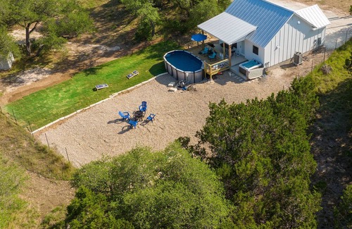 Let the fun begin! The backyard is where the memory making happens. Take a dip in the pool during a toasty Hill Country day, play a game of corn hole, or bring a pool float and soak in rays for a sunkissed glow. The back porch offers the perfect space to kick back and get your grill on; whether it is steaks, ribs, or barbecue the propane grill will accommodate all. Spend evenings under the stars in the hot tub with a cool beverage. With twinkle lights illuminating, the kids will delight in roasting marshmallows under the stars at the fire pit! An added bonus: The fenced-in backyard allows your kids and pets to run around, worry-free!
