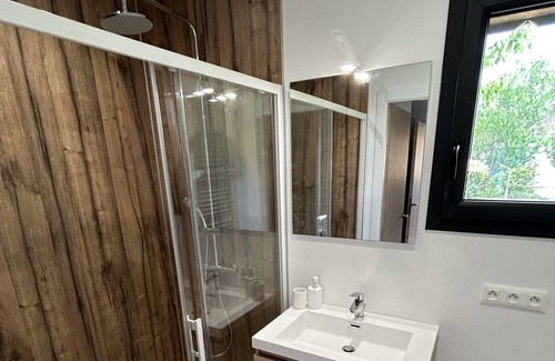Relax in the garden (enjoy the outdoor furniture!) or sip a drink in the spa tub of this chalet. As for the great indoors, you can come inside and enjoy the WiFi and TV.