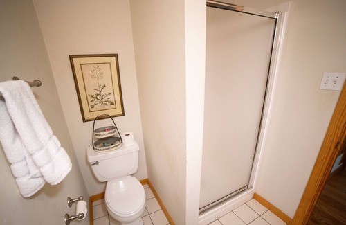 Beautiful cabin on 10 acres with a large screened-in porch and stunning view of Ada Valley. Cabin has one bedroom with a king-sized bed and private bathroom, a loft with another king and a trundle bed (2 twins), and a spacious, open living area with an adjacent bathroom. Decorated tastefully, with all the amenities of home. Detached bunkhouse is 20 ft from the cabin--with heat/air, 4 bunk beds (8 beds total) would be perfect for kids 8 and older. Secluded, wooded setting would make a natural family reunion getaway for 2-3 families. Pets allowed.