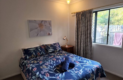 Pia's place is located in a closed street making it a quiet location. This fully tiled, three bed home has everything you need. It is situated 2km from Townsville city, shopping malls, ferry to Magnetic Island, Townsville Strand and public swimming pool. The house is a short walk to the V8 track, parks, boat ramp. It has a large kitchen and an outside area for you to BBQ and enjoy Townsville weather on your private patio. The main bed has a queen and the two additional bedroom have double beds. There is a sofa lounge in the common area. Everything you need in the kitchen to cater for two people or a large family. The bathroom has towels, soap, shampoo, toilet paper. There is a front gate about a meter high across the carport to keep your pets in.
