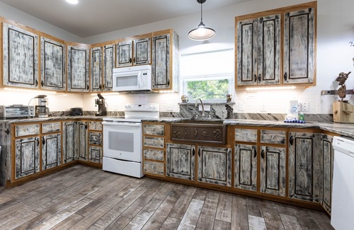 The Captains Quarters contains a King Size Bed, 50" Large Screen Smart TV, a Futon, and a full bathroom with an all-tile shower and Beautiful Custom Cabinetry and Countertops. Stateroom #1 (guest bedroom) boasts 2 Queen Size Beds and a Large Screen Smart TV. Stateroom #2 (guest bedroom) is ready for the kids to jump in the 2 Twin over Full Size Bunk Beds with a bonus Twin Trundle bed all for the little "Buccaneers"!! The Guest Bathroom is shared in the hall with all Beautiful Custom Cabinetry and Countertops. The Fully Equipped Galley (kitchen) is gorgeously decorated with Custom Cabinets and Countertops, a to-die-for Deep Copper Sink, and is ready for you to whip up the Grub for the Crew! The Living area provides a brand new set of couches and chairs, with a 60" Large Screen Smart TV. The downstairs suite, Stateroom #3, is furnished with a Queen Size Bed, a Twin over Twin Bunk Bed, an attached full bathroom with a Tiled Shower, Beautiful Custom Cabinets and Countertops, Mounted Large Screen TV. Let the kids run free in the Game Room that has an extra refrigerator and and a Futon Sleeper!