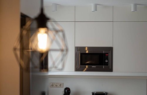 The kitchen is equipped with an oven, a stovetop, and a refrigerator, as well as a coffee maker, an electric kettle, and a microwave. Connect to the WiFi, or get cozy in front of the Smart TV. Bathroom amenities include a hair dryer, towels, and toilet paper. And because there's access to laundry facilities, you can go a bit lighter on your packing. Other amenities at this 1-bedroom, 1-bathroom rental include bed sheets, an ironing board, air conditioning, and heating.