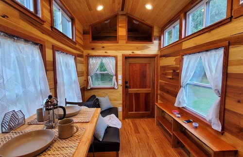Stay in comfort in a beautiful tiny home steps away from a forest with a running creek. Enjoy a camp fire and admire the stars from your hammock before you sleep peacefully in your lofted queen-size bed in the quiet north-central Alabama night. Enjoy complimentary coffee or espresso in the morning as you sit on the porch and enjoy the sunrise.