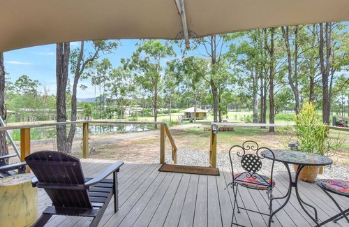 Experience romantic luxury amidst the serene beauty of Australia’s Hunter Valley at our eco-friendly glamping retreat, the perfect escape for two. Nestled in the heart of wine country, our accommodations offer a unique blend of comfort and adventure, all while running off-grid with solar energy. Our glamping tents provide an unforgettable escape into nature's embrace, featuring stunning mountain, rural, and bush views.