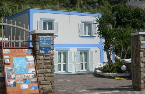 On the upper floor of the CASA DEL FAUNO in CALA FONTE there is the three-room apartment. Finely furnished consisting of: a living room with single sofa bed and open kitchen, two double bedrooms, large bathroom with shower. The exclusive terrace is equipped with table and chairs, an external kitchenette, barbecue, an external shower, another bathroom accessible from the terrace and a lovely exclusive relaxation area among the "Parracine Ponzesi" features. The exteriors are also equipped with sun loungers. Easily accessible, suitable for families, couples and older people. Small pets are accepted. The house comfortably accommodates 5 people. The house has a private parking reserved for the customers of the house, is located in the hamlet of LE FORNA the sea area, served by various activities, convenient, both for the sea and for the various services, the bus stop that connects the whole island is outside the house gate. From the house you can make beautiful walks on various panoramic views. If you love tranquility, stay out of chaos, but being comfortable this is the right home for you.