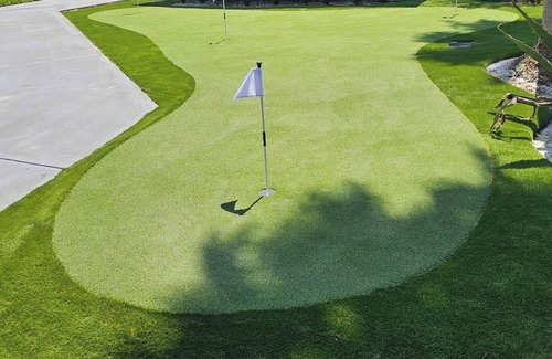Unwind in your private oasis featuring a sparkling pool, sun loungers, and a custom mini putting green for a touch of resort-style fun. Inside, an open-concept living space welcomes you with designer furnishings, a fully equipped chef’s kitchen, and serene bedrooms with spa-inspired ensuite baths.