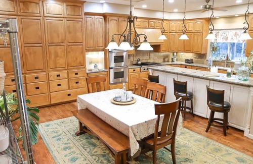Designed for shared meals and gatherings, this home features two indoor dining areas (seating 6 and 4), a plating bar for appetizers, and three additional bar seats. Step outside, and you’ll find a spacious dining setup by the pool, perfect for hosting extended family or enjoying a barbecue. Both charcoal and gas grills are available for your use.