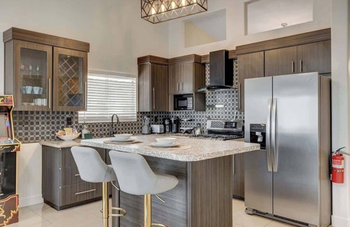 Welcome to your Las Vegas retreat! This 4BR home is located in North Las Vegas, just 12 miles from the Strip. Make yourself at home with everything we have to offer for your modern getaway featuring a new pool and retro arcade machines.