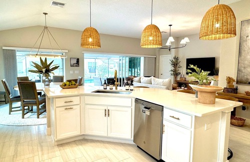 Poolside Palms–Modern Luxury Retreat with Private Resort-Style Pool and Electric 4-seater Golf Cart is located in Wildwood. Poolside Palms–Modern Luxury Retreat with Private Resort-Style Pool and Electric 4-seater Golf Cart provides accommodation, featuring Bedding/Linens, Wellness Facilities, Fireplace/Heating, among other amenities. This House features Bedding/Linens, Wellness Facilities, Fireplace/Heating, to make your stay a comfortable one.