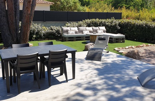 - A terrace of 40m2 with garden furniture, barbecue and two sun loungers for a siesta in the shade of a magnificent pine.