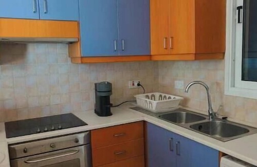 The apartment is situated in a secure complex. The apartment is on the upper floor and can only be reached by steps. The apartment itself is open plan with fully equipped kitchen which has a coffee machine, kettle, toaster, microwave and washing machine for longer stays. The living room is tastefully decorated with 2 large sofas and a flat screen TV. There are 2 bedrooms, bedroom 1 has a king size bed and bedroom 2, 2 large single beds. All linen and towels are provided. The bathroom is newly renovated with a walk in shower. A spacious balcony overlooks lush greenery and consists of a dining table and chairs, it's a tranquil place to sit and enjoy your morning coffee or enjoy your evening meal whilst the sun goes down. The complex has it's own private pathway that leads you to Meneou beach. We are 10 minutes from the airport and 15 minutes to McKenzie beach. We are located 5 minutes from Faros beach and the Kite surfing beach. Kiti village is in close proximity also where you can enjoy the Cypriot way of living with tavernas, cafés and other restaurants.