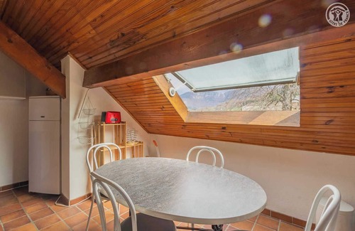 4 gites in the owners' house. 2nd and top floor (with shared entrance): kitchen, living room (1 double bed), 1 bedroom (3 single beds), shower room with WC. On the ground floor common laundry room in the boiler room (washing machine and dryer). Total floor area: 52 m² attic parts included. Balcony. Common courtyard + ground. Private heated swimming pool open from mid-June to the end of August. Lawn bowling. Summer kitchen with wood oven. Alpine skiing + Revard cross-country 12km. Aix les Bains thermal baths. Character pavilion in the heart of the Aix countryside on the Revard road, in the Bauges Regional Natural Park. Very quiet residential hamlet facing south-west. Pleasant preserved setting of meadows, hills and forests. Beautiful private terrace. Superb outdoor area very neat and flowery with heated swimming pool (open from mid-June to the end of August), boules and summer kitchen. Superb very clear view on the countryside.
