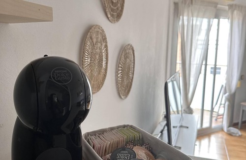 Kitchen equipped with microwave, Dolce Gusto coffee machine, dishes, kettle....There is also air conditioning in the living room and heating.