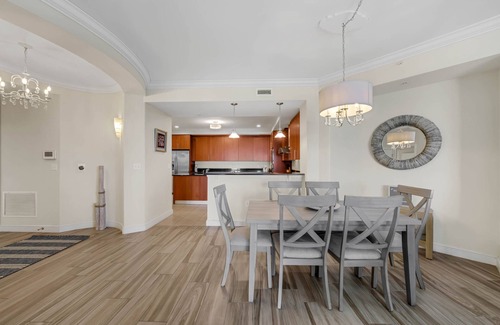 This unit features a gourmet chef inspired kitchen with all stainless steel appliances and every piece of cookware your heart could desire to make you feel right at home and on the balcony is an awesome Weber Grill. The kitchen area has a bar top with seating for 2 and a high top dining table with seating for 6.