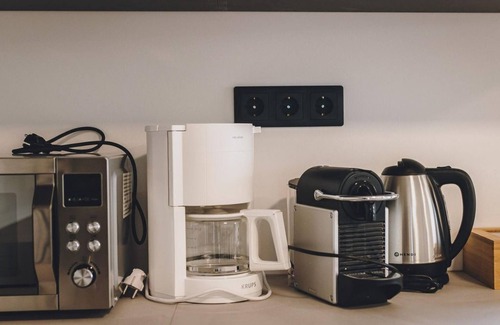 Prepare a home-cooked meal in the kitchen, complete with an oven, a stovetop, and a refrigerator, as well as a coffee maker, an electric kettle, and a toaster. Bathroom amenities include a hair dryer, towels, and toilet paper. And you won't have to pack extra clothes, because you'll also have a dryer. Other amenities include a living room, bed sheets, an ironing board, and heating.