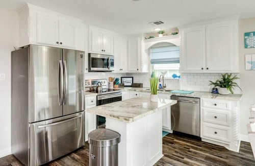 Get ready to take in both the Bay and Gulf water sights and sounds from this pink cutie's multiple elevated decks - Just RELAX!You'll love staying in this beautifully decorated coastal cottage near the beach walkover! Spend your days on Surfside's beach taking advantage of the sunshine while you swim, fish, shell, and build sand castles.