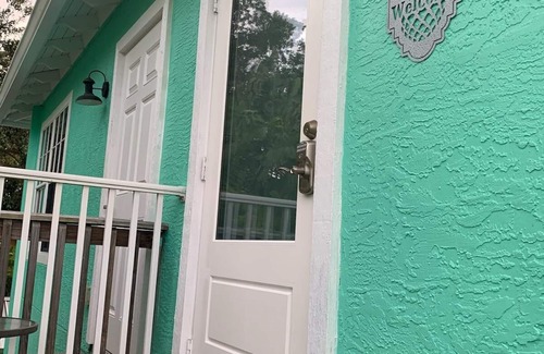 You will find your cozy space in the rear of our Key West style home separated by a tropical courtyard complete with private access to your Little Oasis. Nicely appointed apartment with all the comforts and amenities of home. Large bedroom/living room with full size eat in kitchen complete with dishwasher, large microwave, electric stove, Keurig coffee maker, toaster/ convection oven and other small appliances.