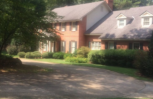 This is a spacious, private home with 5200 square feet with a huge back porch and sun room over-looking a serene lake that is great for barbecuing and entertaining. There are 5 bedrooms (queen-size beds) and 4 bathrooms, 2 dining areas,a large kitchen and 3 living room/den spaces. Watch other football games on the big screen t.v. with 3 other t.v.'s and DVDs. Play your own football game in the large back yard. Halfway between Tiger Town and Moore's Mill, this home has it All!