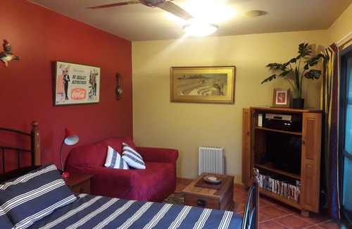 Separate from the main dwelling, catering for up to two people. You can lie in bed and look out onto a sub-tropical private garden. On a still night, you can hear the ocean which is only 600 metres away or you can take in the southern night sky. If you need to get away and recharge, then you have come to the right place.