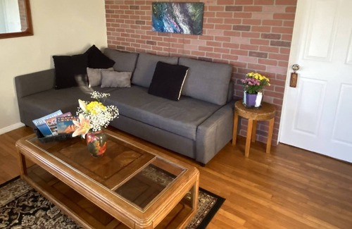 No SHARED WALLS. VERY PRIVATE. One bedroom One bath cottage with your own PRIVATE PATIO with FREE TO USE WASHER & DRYER. There are hardwood floors throughout and tile in the kitchen, dining room, & bathroom. The full bathroom with tub/shower combo is fitted with essentials for your convenience such as hair dryer, soap, shampoo, conditioner, & plenty of towels. Take advantage of the full kitchen stocked with pots, pan's, & everything needed to cook your meals. We also have a high chair for little ones to enjoy your healthy homemade cuisine. Relax on the couch that pulls in to a full/queen size bed and watch TV in the living room, or go for a walk in the fantastic neighborhood WITH A 98% WALK SCORE!!! San Diego International Airport, formerly known as Lindbergh Field is only 2.6 miles away so outside the cottage does have a potential to be a bit noisy but the views of the flight path and San Diego’s Harbor view where the SUNSETS WILL FOREVER BE REMEMBERED. The views are unique and captivating and this quaint cottage is at the heart of it all. The cottage is in the flight of the airport so airplane noises outside are a disturbance but rest assured when inside with windows shut…all outside noises are mute. Cottage is equipped with double pane windows to ensure a good nights sleep.