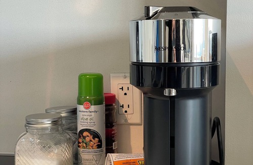 Our kitchen is perfect for preparing meals and snacks, equipped with a microwave, fridge, stove, oven, dishwasher, toaster, blender, and rice cooker. Essentials like dishes, silverware, pots, pans, and utensils are also provided. For added convenience, enjoy our Nespresso machine with complimentary pods, spices, cooking oil, and other pantry staples.