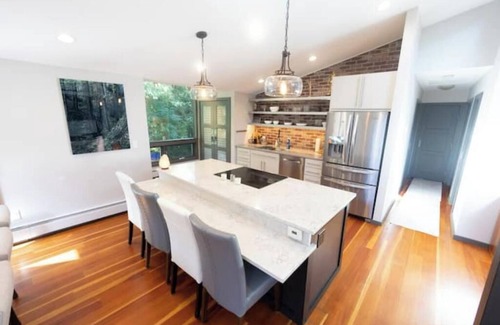 Discover the perfect blend of luxury and comfort in this welcoming retreat. This spacious getaway features a high-end kitchen, flooded with natural light, and offers everything you need for a memorable stay. Step outside to your private patio and outdoor oasis, surrounded by towering trees and a tranquil creek, perfect for unwinding in nature. Just a 10-minute walk to town, enjoy the best of both worlds—serenity and easy access to local attractions.