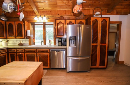 Located down a long private country road, the Smiling Fox Den is a perfect weekend or week long getaway. This spacious 4 bedroom , 3 bath home can accommodate 8 guests comfortably with 2 living areas and large patio w/large pool for outdoor entertaining or just hanging out. Note that the "jacuzzi" is extra seating and not heated. This home is perfect for a girls/guys retreat, a family get together and small weddings. Located just 5 minutes to downtown La Grange and 15 minutes to enjoy antique shopping.