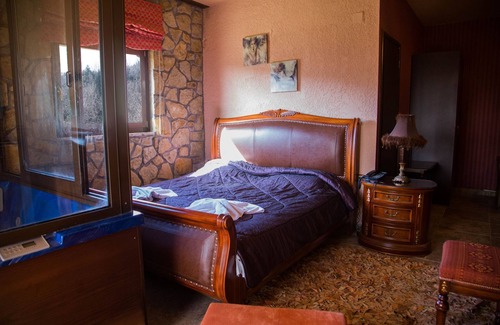One space suite apartment ranging from 26 to 37 square meters, including a private indoor heated mini-spa pool with steam shower cabin within the bathroom, 1 queen size Canadian hand made wooden bed, stone curved fireplace and magnificent view of Lake Plastira and the forests of Pindos. One of the three Private Jacuzzi suites with 37 square meters space, may accommodate up to 3 guests (2 adults and 1 child), since it also consists of a sofa bed.