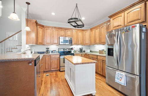 The oversized deck with chairs allows you to soak up the sun on a quiet part of Lake Oconee! Come enjoy the beach where you can kayak from after a day of tubing on the lake! Dogs are family too, and we are dog friendly at our home.