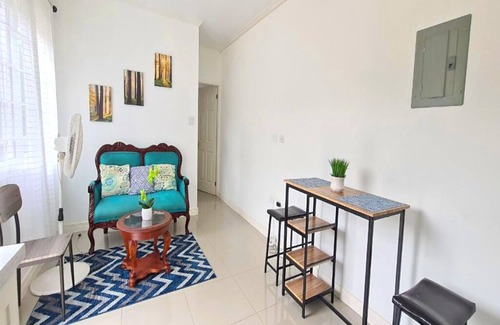 Tranquil safe surroundings close to major conveniences. Shopping and entertainment are just minutes away. This one bedroom, one bath is private with its own private terrace and rooftop deck area. Area is close to community park for jogging, tennis, basketball and Hope Gardens for picnics and enjoying Jamaica's Botanicals.