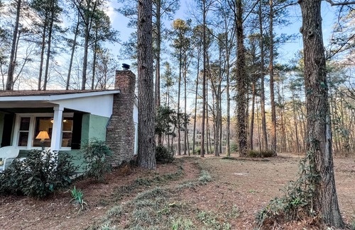 This private, 3 bedroom cottage is hidden on 3 acres with a huge backyard and pond and stocked with everything you need to make it feel like home. Perfect for a trip to the area or weekend staycation. Less than 5 minutes to Evans Towne Center and ~8 miles to Augusta National and Fort Gordon. The kitchen is equipped for cooking, full laundry room and outdoor patio available. This property was in the path of Hurricane Helene and does have tree damage in the surrounding woods.