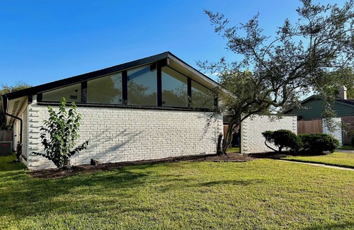 Newly renovated, 3 bedroom/2 bathroom upscale mid-century modern home located in the cozy Meadows Place neighborhood a stone's throw away from all major SW Houston/Sugar Land Hospitals. 5 mins from Aldi, Walmart and The Fountains entertainment & shopping complex.