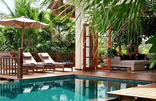 The four-bedroom Villa Indah sits alongside a tree-covered riverbed that brings plenty of shade and greenery and occupy 3 levels: