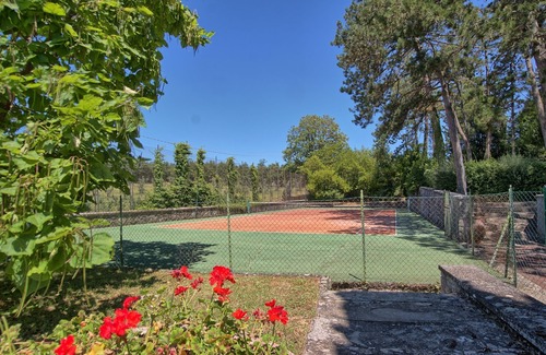 Garden (5000 m2): swimming pool (length: 15m, width: 12m, max. depth: 3m, min. depth: 1.5m, fenced), WIFI internet, barbecue, al fresco dining, dining table (people: 16), terrace furniture, 13 sunbeds, fenced, enclosed property, tennis court.